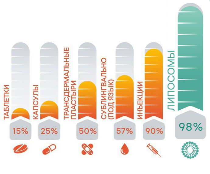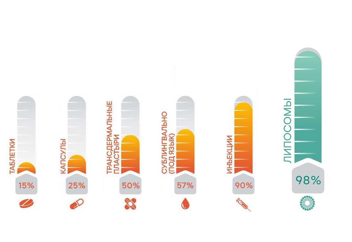 Применение липосомальной формы позволяет преодолеть факторы, ограничивающие эффективность перорального приема некоторых нутриентов.