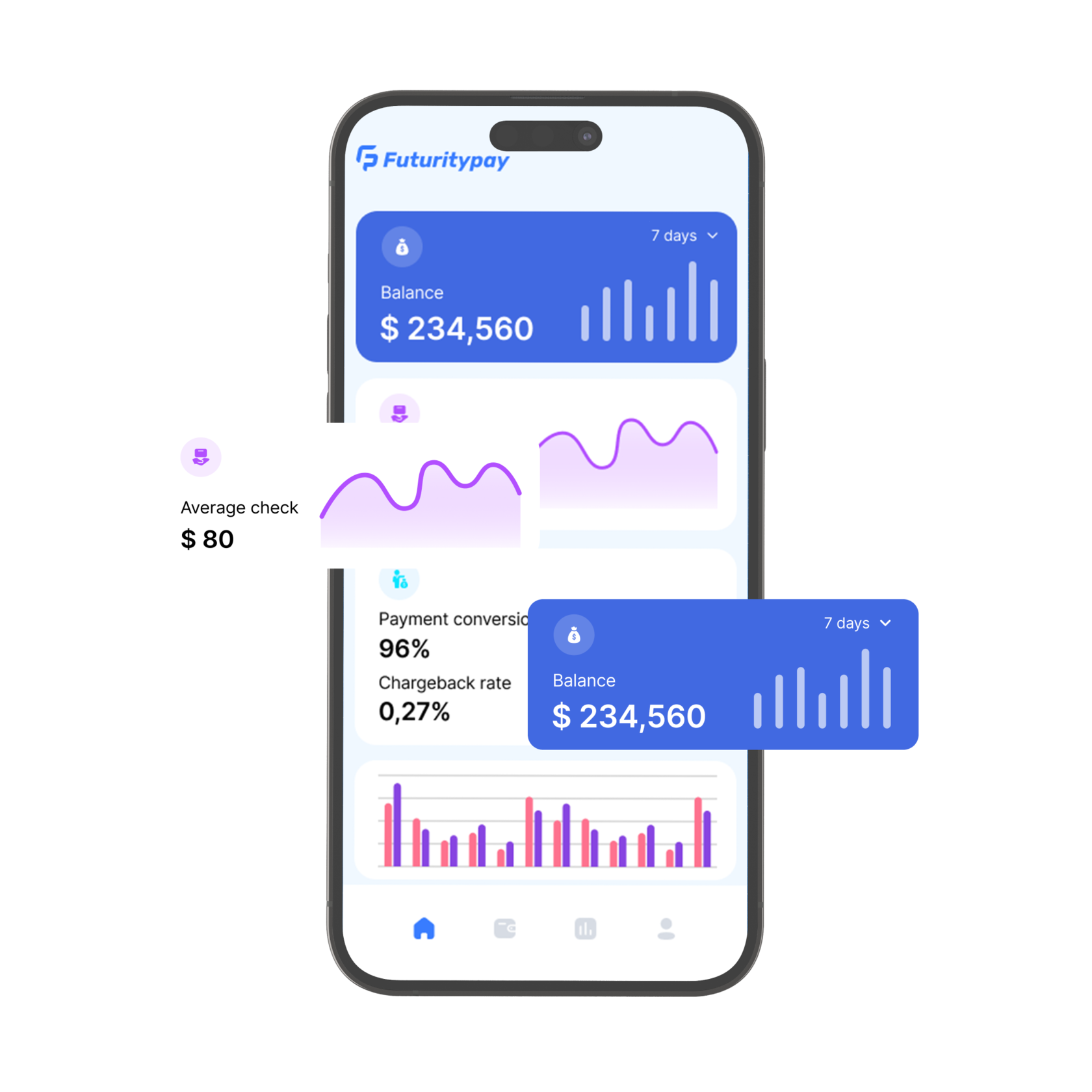 The Futuritypay payment gateway handles large amounts without additional requirements, checks and blockages. High payment limits will increase payment conversion.