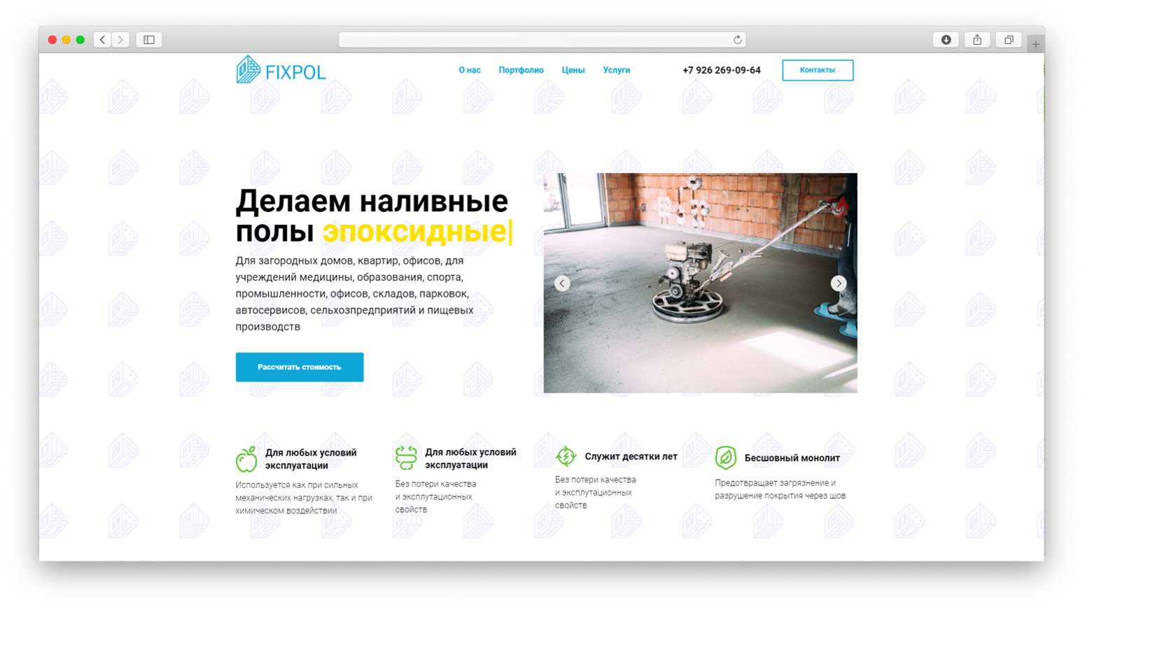 Посадочная страница для компании по заливке полов