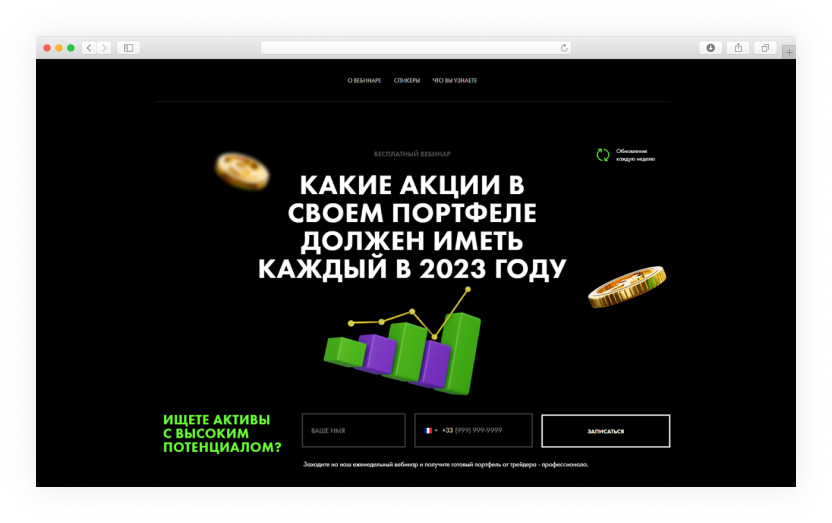 Сайт вебинара с готовым портфелем