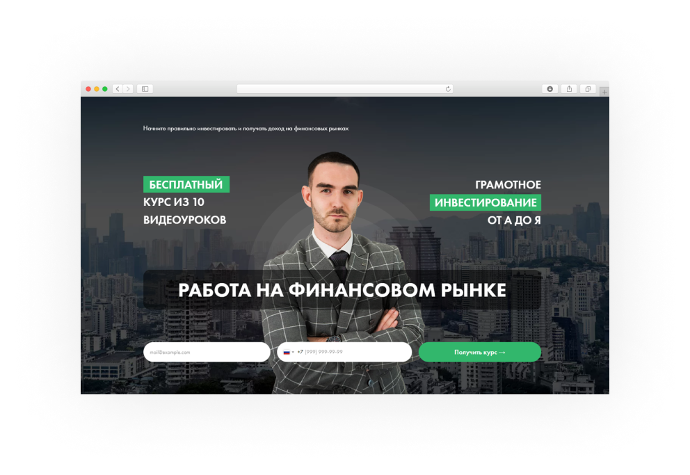 Лендинг для школы финансов с бесплатными видеоуроками